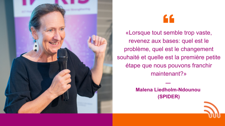 «Un bon projet n'est pas défini par ce qu'il contient, mais par la clarté avec laquelle il résout le problème qu'il se propose de traiter», a rappelé Malena Liedholm Ndounou de SPIDER.