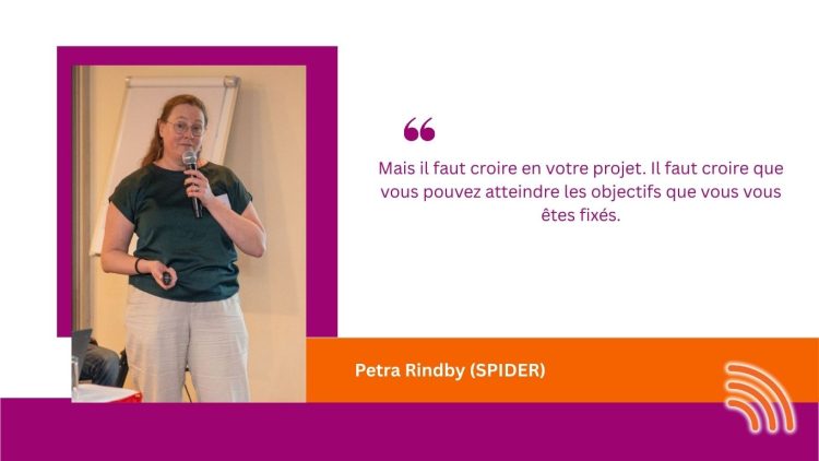 Petra Rindby (SPIDER) a animé une session sur la gestion de projet et le Suivi, Évaluation, Redevabilité et Apprentissage (SERA). Cette session a guidé les ANR dans la structuration de leurs projets pour garantir leur alignement avec les IC. Elle a également insisté sur l’importance de croire en son projet :