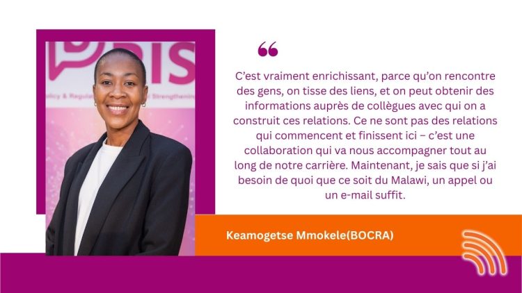 La session au Ghana a renforcé la mission centrale d’iPRIS : renforcer les capacités des régulateurs africains des télécoms grâce à l’apprentissage entre pairs, en aidant les ANR à construire des systèmes numériques inclusifs. En réunissant régulateurs nationaux et organisations sous-régionales, la session a montré comment la collaboration régionale favorise un développement numérique harmonisé et aide les pays à s’aligner sur des normes réglementaires et des pratiques efficaces. Comme l’a partagé Keamogetse Mmokele du Botswana :