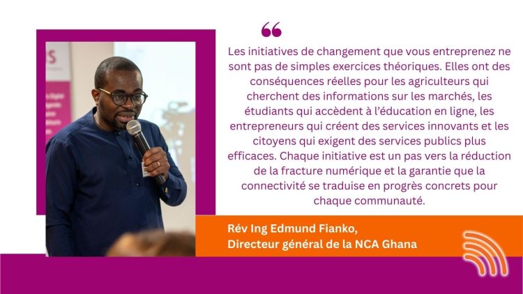 La journée a débuté par les discours d’ouverture du Rév. Ing. Edmund Fianko, Directeur général de la NCA, et de Gisela Spreitzhofer, de la délégation de l’UE au Ghana. Ils ont mis l’accent sur les bénéfices de la connectivité pour les secteurs du développement, la transformation numérique en Afrique et les IC des ANR, donnant le ton d’une semaine collaborative. Comme l’a souligné le Rév. Ing. Edmund Fianko :