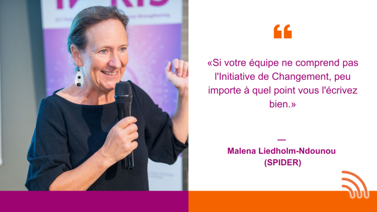 Malena Liedholm Ndounou a guidé les équipes sur la conception des Initiatives de Changement, insistant sur la clarté d'objectif et la documentation rigoureuse.